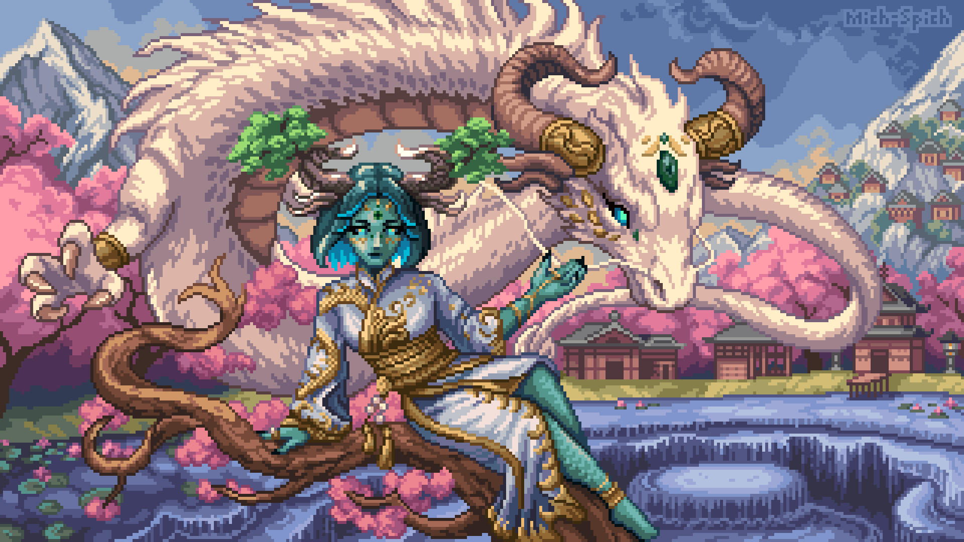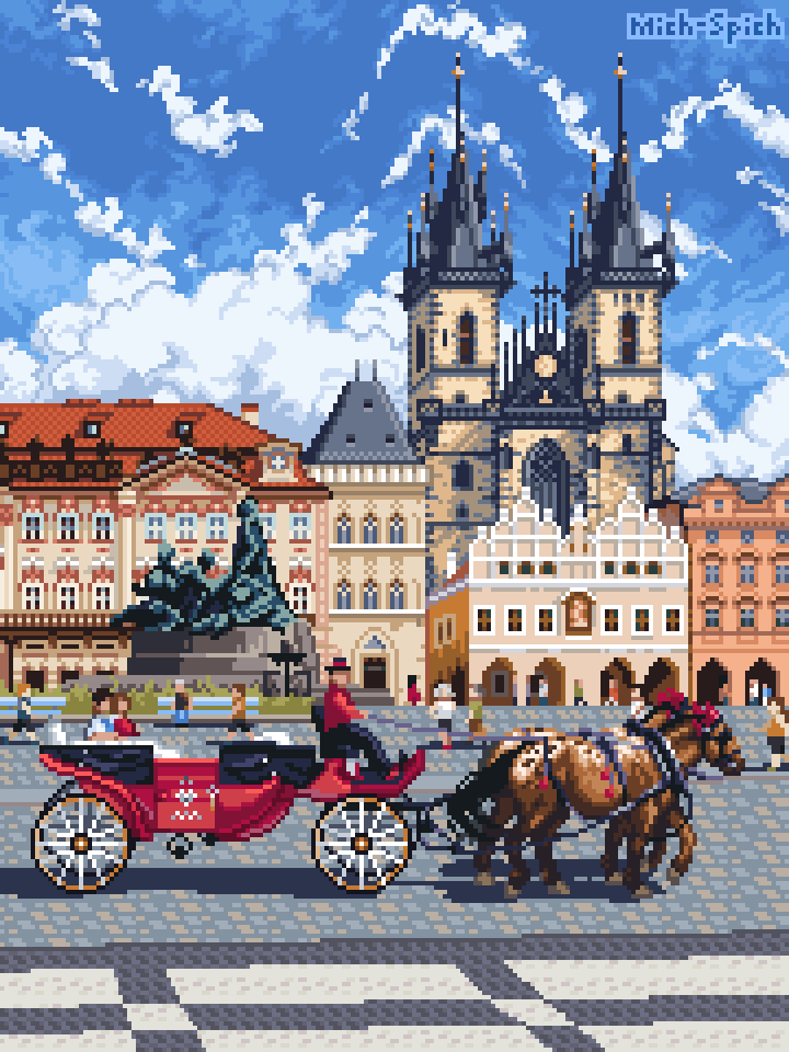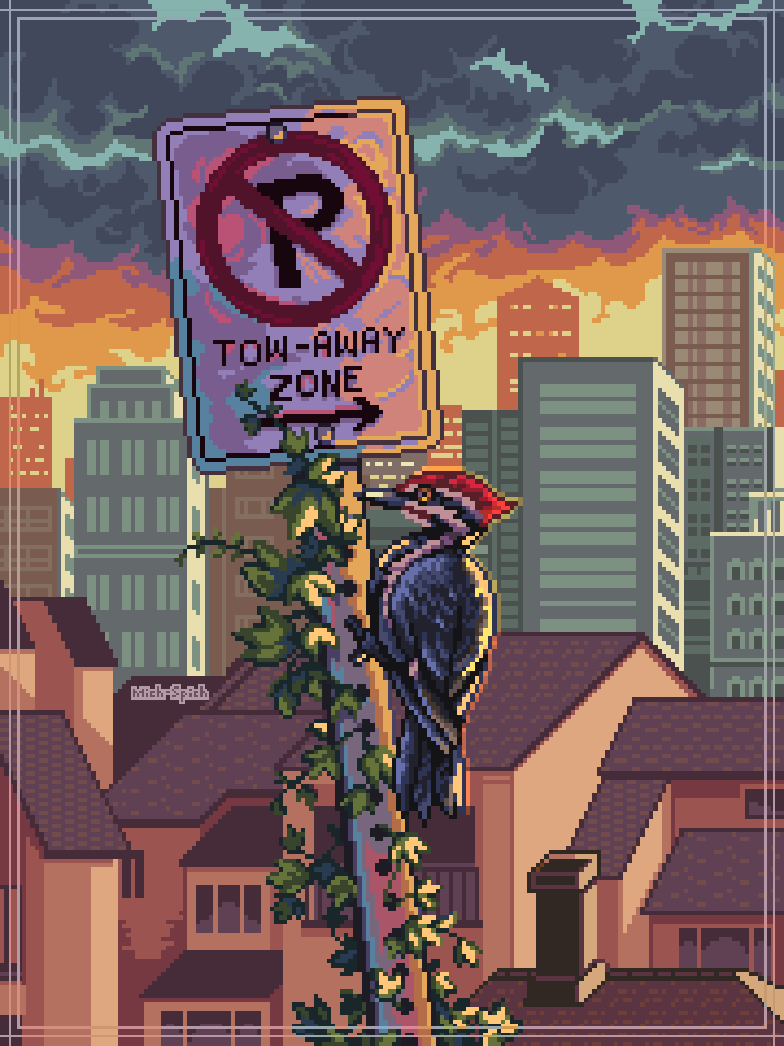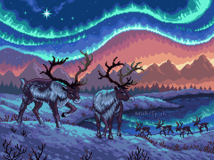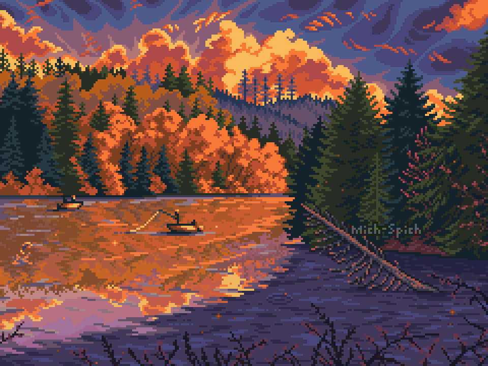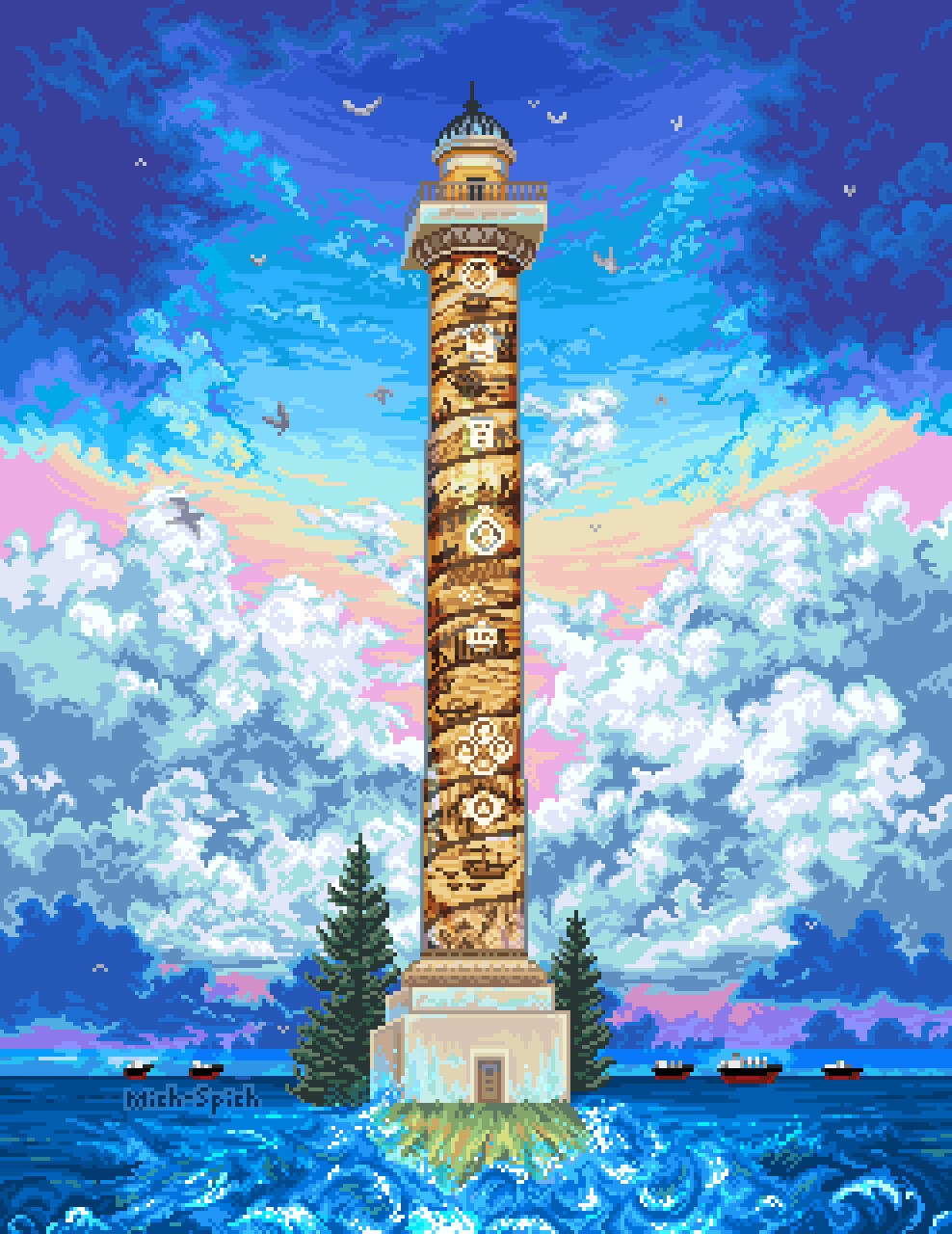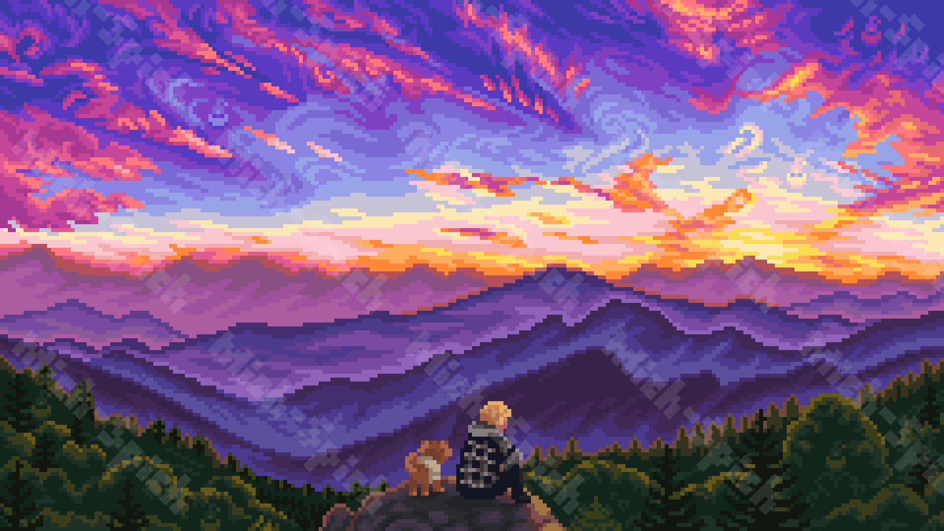 My name is Mich and I am a Pacific Northwest-based artist who creates detailed rich landscapes through pixel art, a type of digital media. I draw inspiration from nature's patterns to create an environment that the observer can explore. I set the scene for my subject through a colorful sky, which ranges from mountains and rivers to historic structures. I use pixel art to give my artwork a retro feel, inspired by the 2000s decade when I was growing up. In a technologically advanced society, my work presents the natural world through a digital lens, encouraging others to seek out similar destinations. My art is driven by the uniqueness of every setting as I engage with each location, with a majority of concepts forming during the moment.